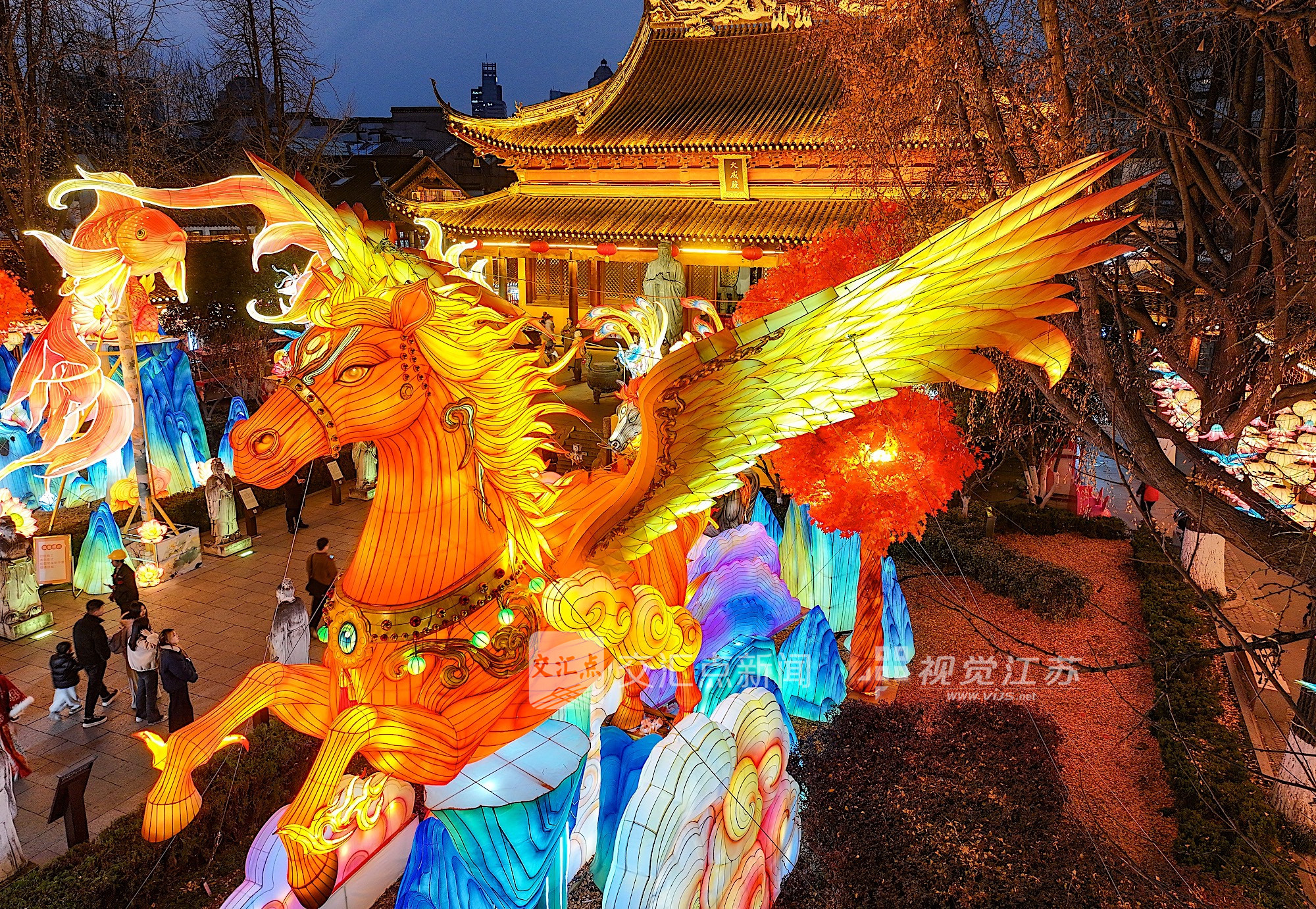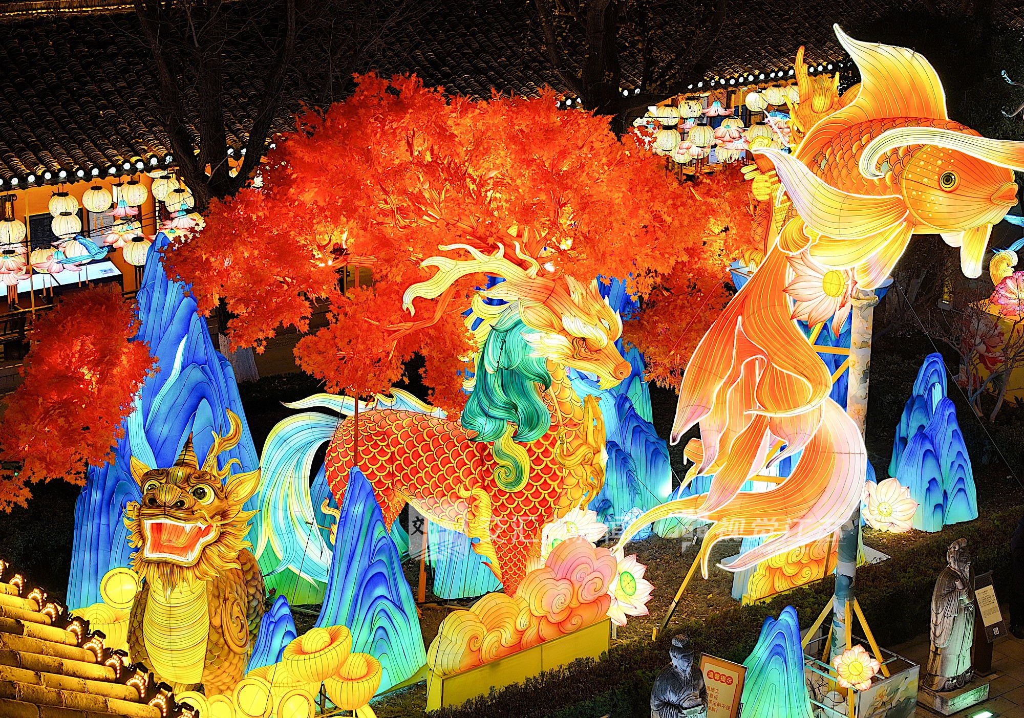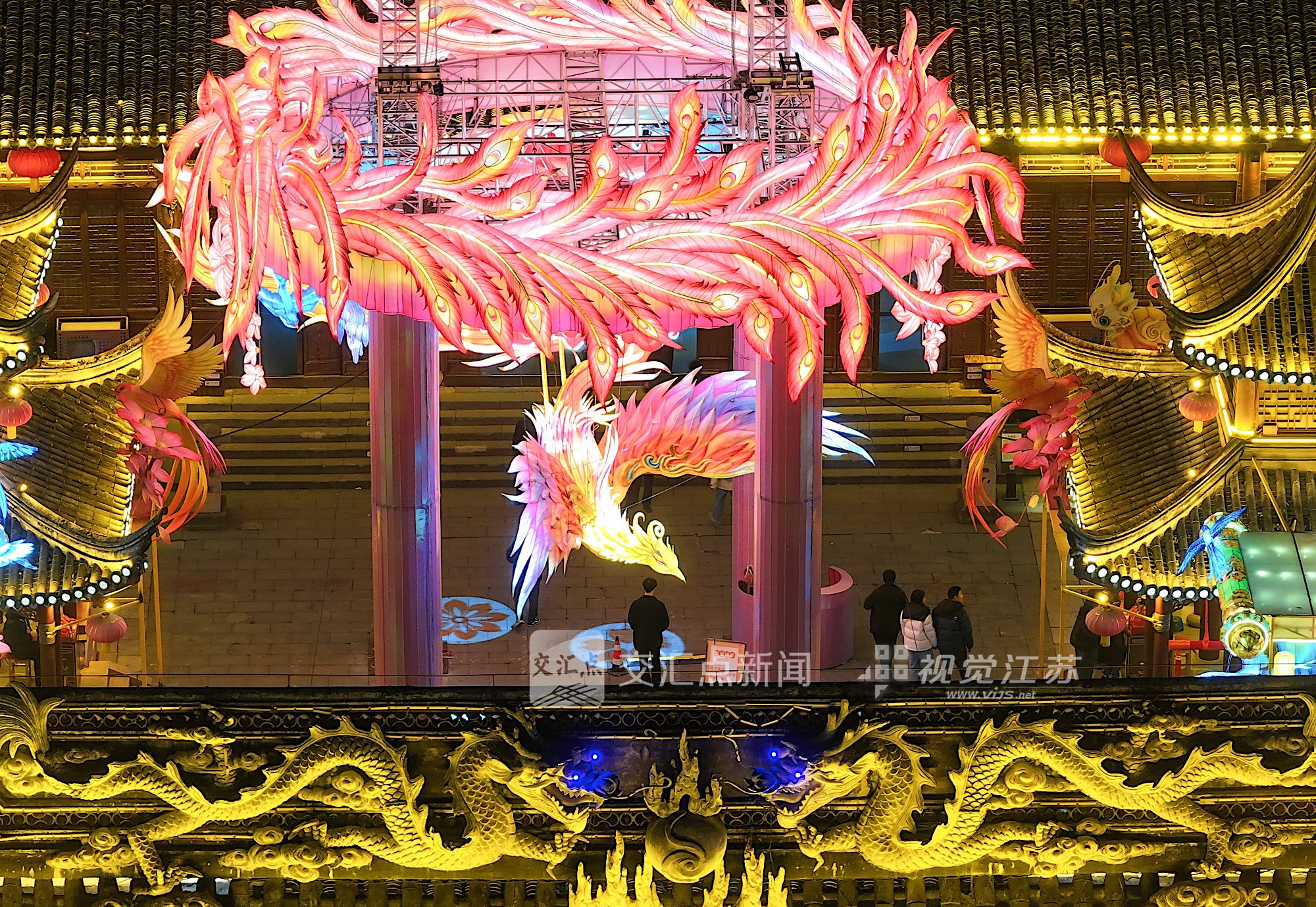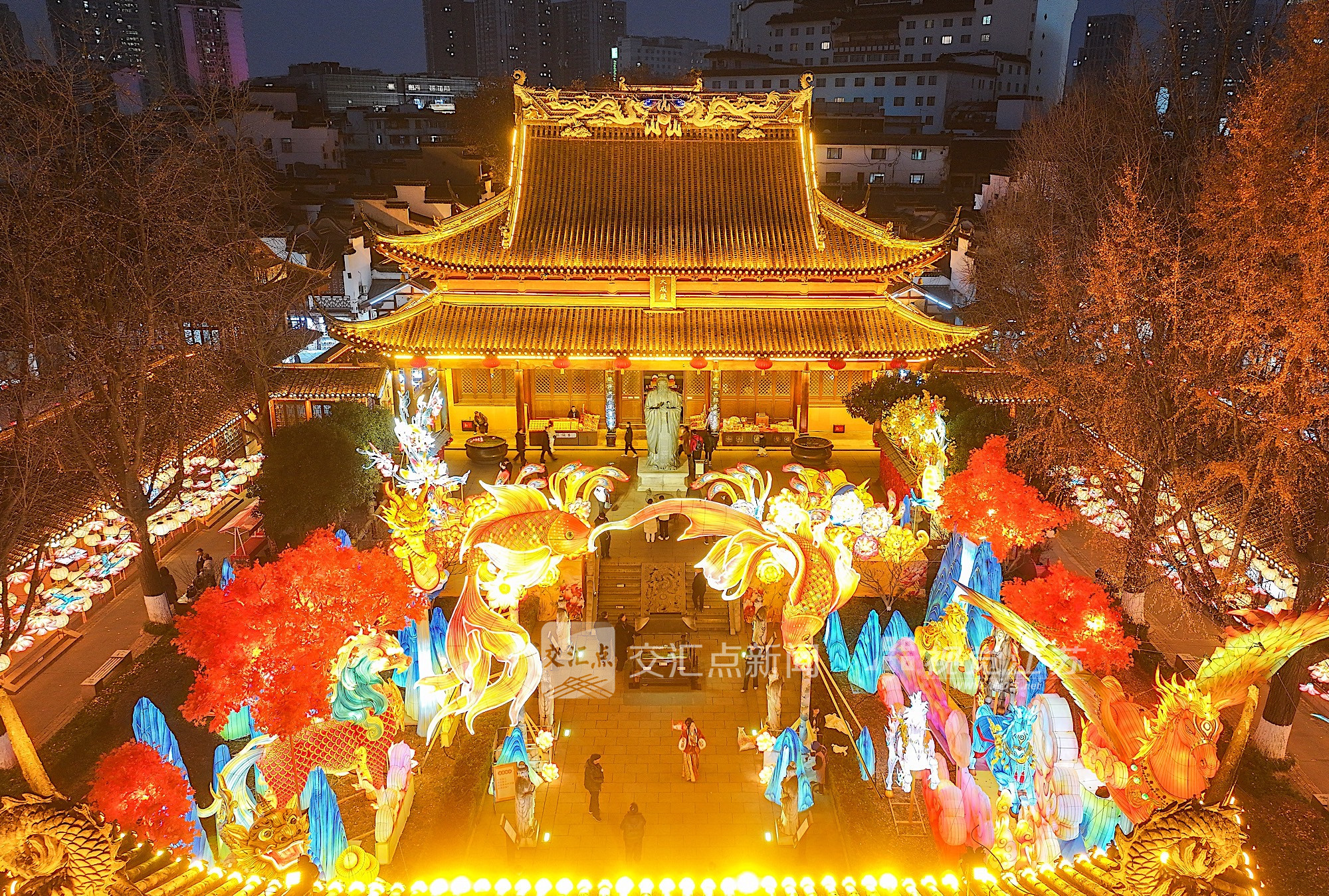 12月30日晚,第四十届中国·秦淮灯会主会场夫子庙大成殿举行试亮灯,四大主题区域30余组灯组同时点亮,华光流转,绮丽初绽。