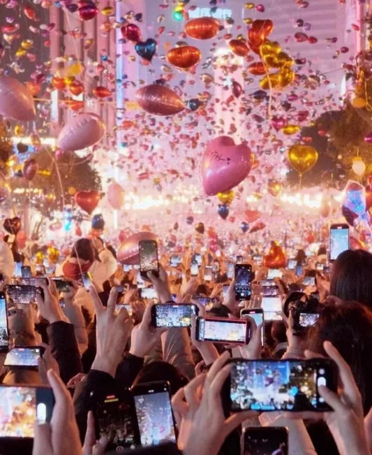 万人倒数、气球放飞、灯光特效