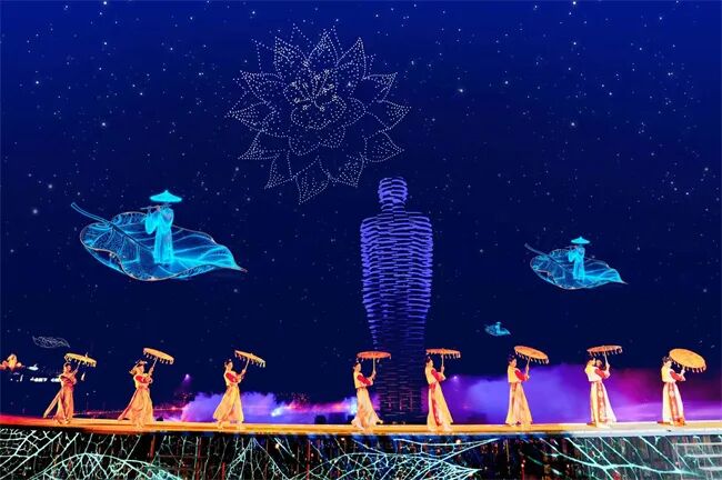 15分钟千架无人机表演、5分钟绚烂烟花秀,搭配王牌演艺《状元归来》与NPC互动