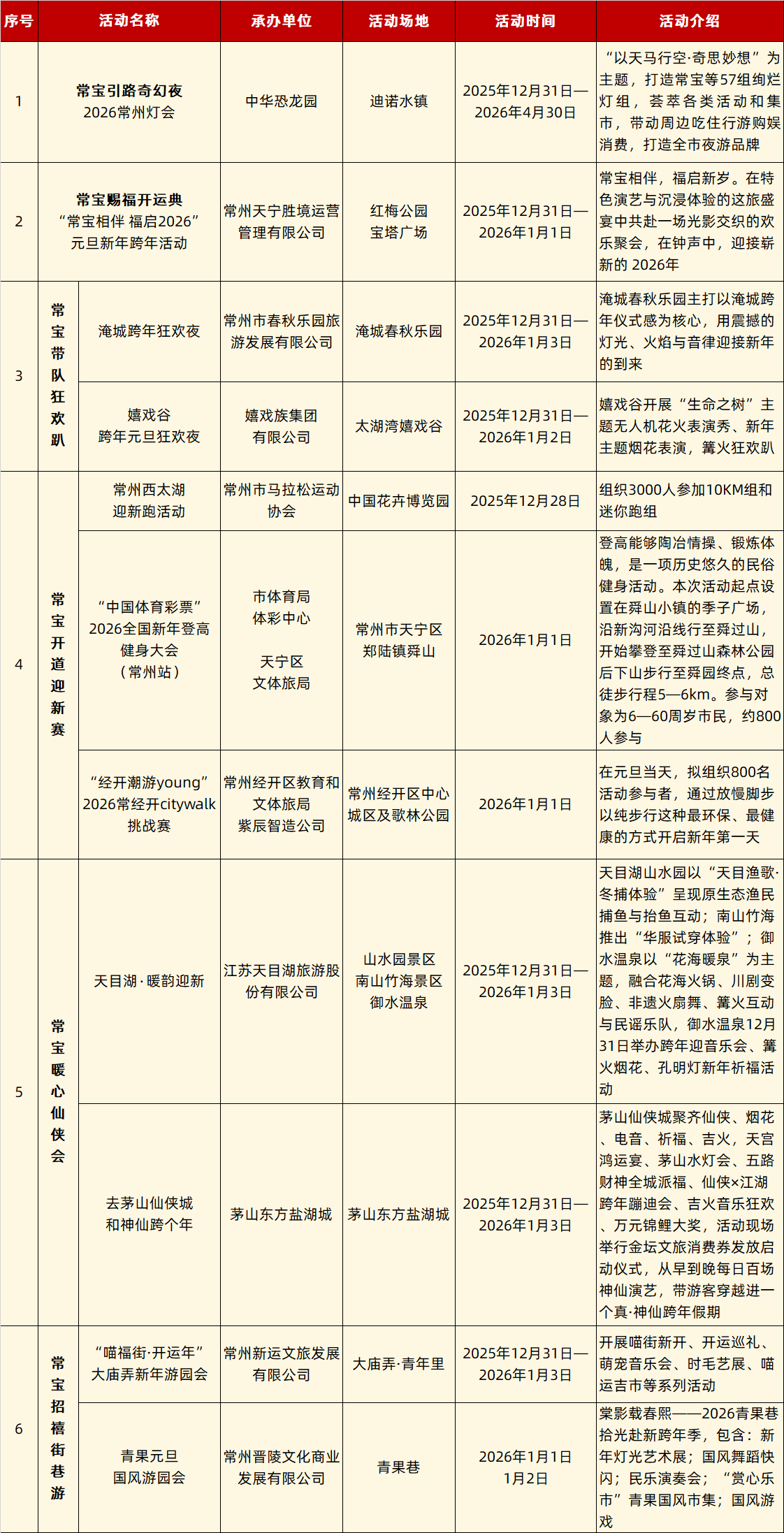 6h沉浸式江苏十三城风华跨年焰火盛典、“苏韵寻芳”沉浸式演出、园博园・园野营地跨年派对、自然探索乐园“Plan‘W’—暖爪计划”、零点钟声、无人机倒数
