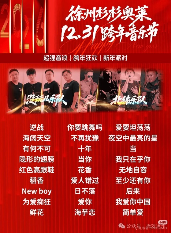免费的跨年音乐节、免费的大巴接驳班车!超强音浪、跨年狂欢、新年派对、倒计时呐喊、北纬乐队没玩儿乐队现场助阵