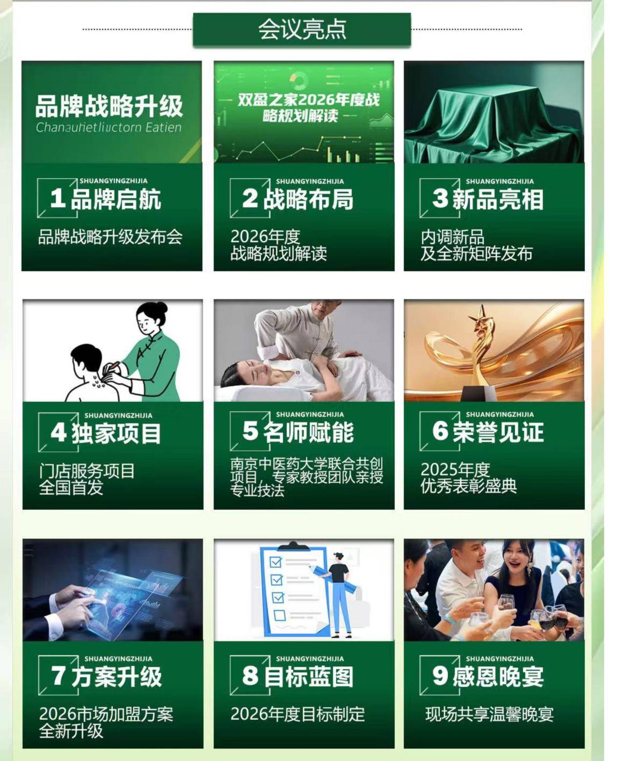大会将重磅发布品牌战略升级规划,开启双盈之家发展新纪元。通过深度解析养生行业趋势与市场机遇,为全国门店提供清晰的战略指引与发展路径,共同迎接健康产业新机遇。