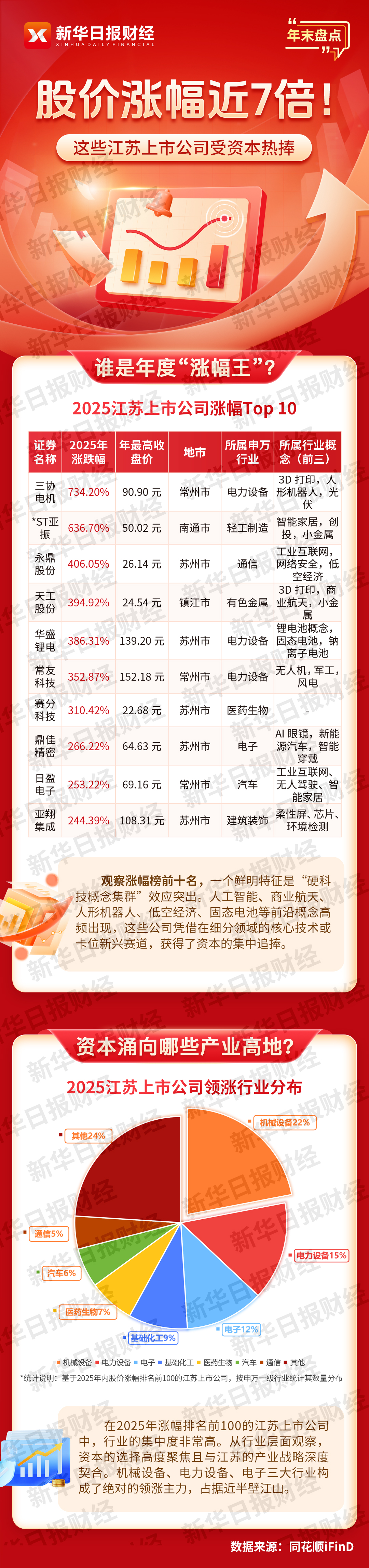 观察2025年全年行情,江苏721家A股上市公司中,有588家股票上涨,上涨率约82%。一批代表前沿技术与产业升级方向的上市公司股价屡创新高,成为市场最瞩目的增长极。