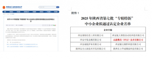 近日,陕西省工业和信息化厅正式公示2025年度“专精特新”中小企业认定名单,高能数造凭借在全固态电池装备领域的深耕突破与突出创新能力,成功入围!这一认定不仅是省级层面对企业专业化发展、精细化管理、特色化优势与新颖化创新的权威肯定,更是对高能数造助力新能源产业核心技术自主可控的高度认可。