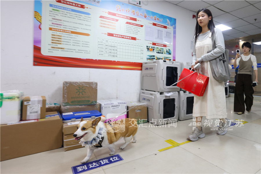4月10日,乘客携带宠物狗来到中铁快运南京南站营业部办理宠物托运服务手续。