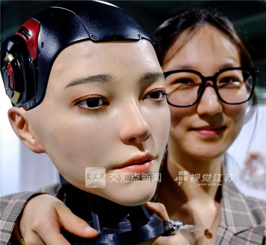 9月24日,南京市雨花台区中国(南京)软件谷华夏机器人展示厅,仿生人形机器人可以模仿人的真实表情,让每一个交互细节更贴近人类的自然交互体验。