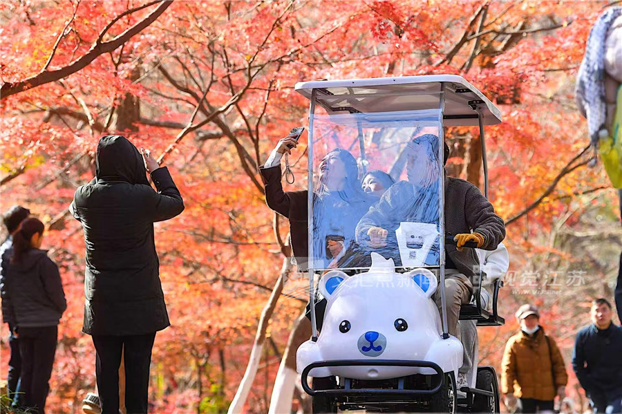 12月14日,天气晴好,南京市栖霞山景区内游客如织,迎来赏枫最佳观赏期。人们漫步于红叶掩映的山径,纷纷驻足拍照,尽情享受这一年一度的视觉盛宴。