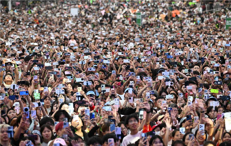10月1日,第14届咪豆音乐节在南京市溧水区天生桥景区燃情开唱。薛之谦、单依纯、吴克群、郭冠廷等艺人登台献唱,台下数万乐迷高高举起手机。