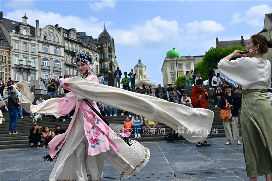 当地时间6月9日下午,一系列充满东方韵味的文化快闪活动在比利时布鲁塞尔艺术山和大广场精彩上演,为即将开幕的“文明遇·鉴:中国大运河文化江苏周”奏响序曲。