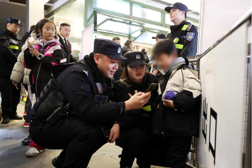 无独有偶。市民陈女士在弘阳广场中心秀场和孩子走散,向正在执勤的南京江北新区分局泰山新村派出所民警曹元亨求助。民警详细询问孩子的衣貌特征,迅速将情况上报前线指挥点。指挥点迅速启动“火线寻人”机制,不到20分钟,民警便成功找到走失儿童。看到孩子平安回到身边,家长向民警连声道谢。