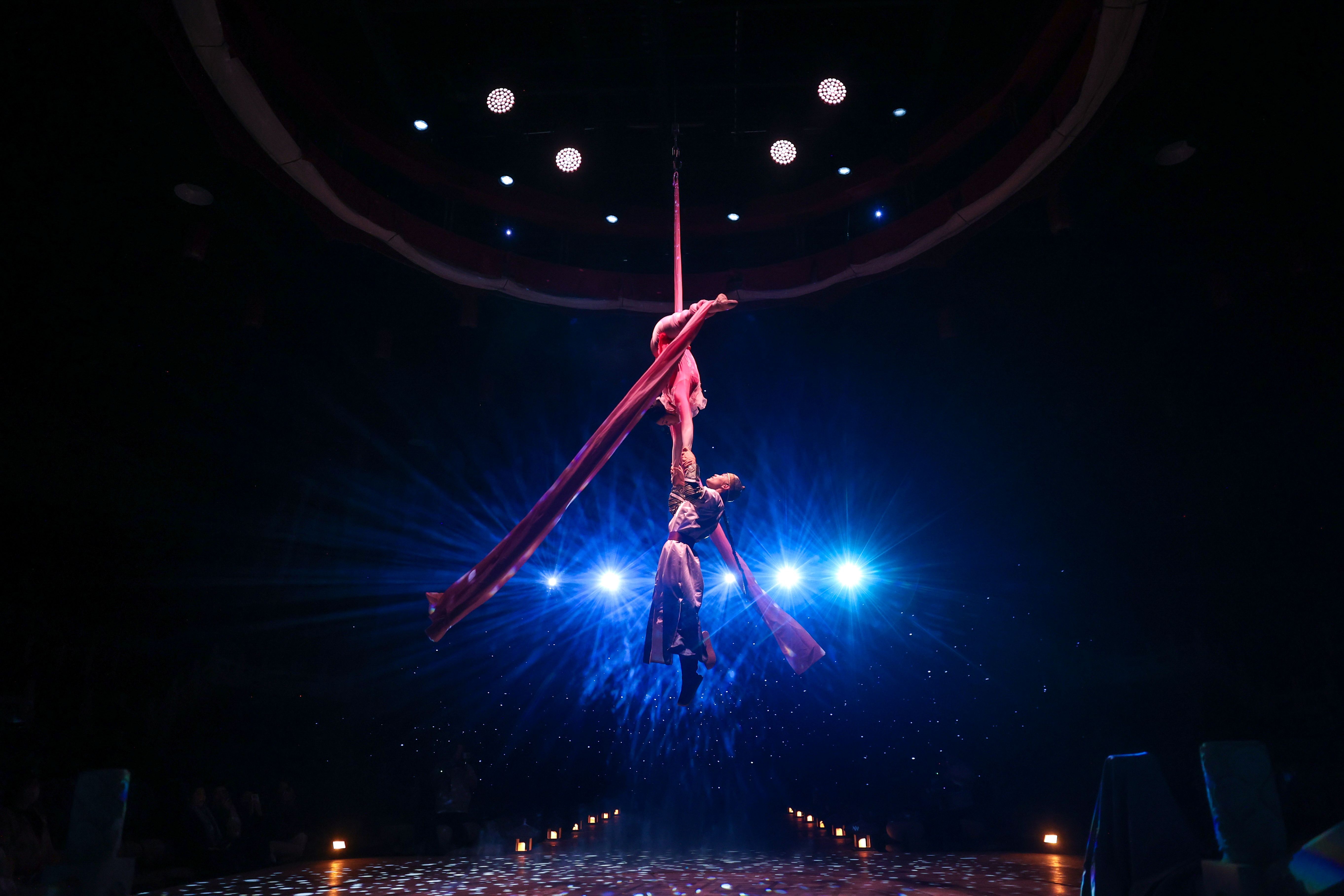 《甄嬛传》沉浸版在北京A88剧场进行整体空间改造与内容定制,打破传统“镜框式舞台”的单向观看模式,采用环绕式观演结构与多区域同时表演,将观众包裹进宫廷叙事之中。在此基础上,作品延续开心麻花对喜剧节奏与观演关系的把控,在高密度叙事中形成张弛有度的观演体验。舞台呈现融合多媒体影像、空中绸吊与肢体表演等多种舞台手段,使观众不再只是旁观者,而是在庄重与幽默并置的氛围中,置身于宫廷权谋与情感漩涡之中。