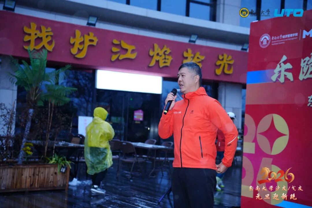活动现场暖意融融,氛围热烈。莅临本次迎新跑的领导与嘉宾有:东南大学法学院党委书记刘启川教授、东南大学经济管理学院张玉林教授、东南大学经济管理学院王铮教授、南京大学长江产业发展研究院副院长江静博导、南京工业大学经济与管理学院副院长张长江教授、南京林业大学轻工与食品学院刘鸿斌教授、南京林业大学马克思主义学院薛桂波教授、沙赛组委会高岩先生、南京马拉松一姐向老师、跑研社主理人&《无伤跑法》作者郑家轩先生、国家体育总局康复师&轻茄子健身主理人黄晓波先生、知名跑步博主瓶盖儿。