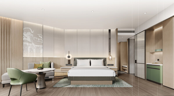 酒店设计巧妙融合现代简约风格与巴蜀建筑及竹艺文化灵感,打造充满本地风情且舒适活力的居停空间。230间现代化客房及套房以和谐淡雅的中性色系为基调,点缀绿色元素呼应竹海意境,装饰墙融入蜀南建筑细节,致敬在地文化。所有客房均配备舒适床品、65寸高清电视、灵活办公及休闲空间、免费高速无线网络、步入式淋浴间及观景落地窗,满足当代宾客的多元需求。