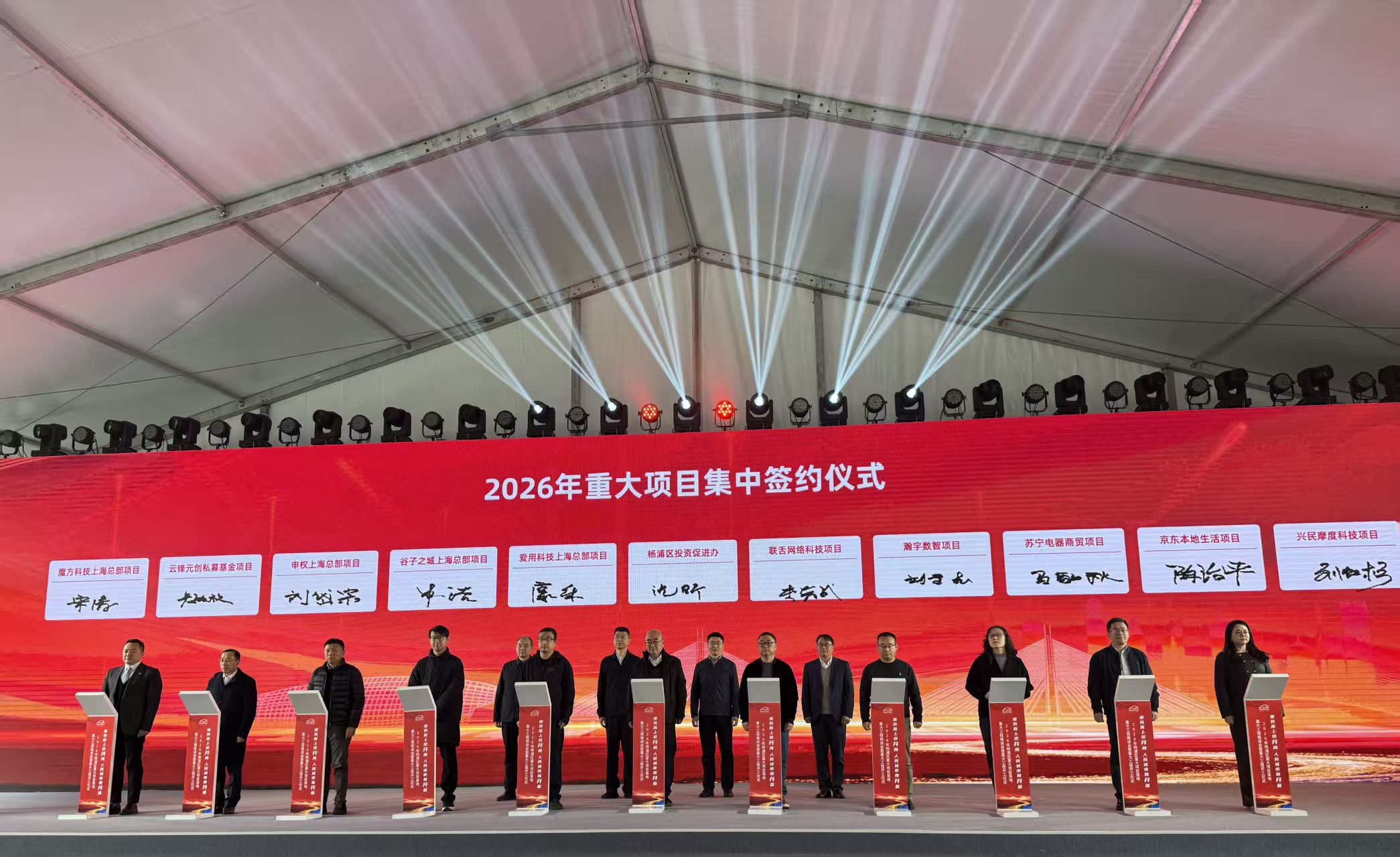 仪式上,杨浦区副区长吴雷、副区长刘晋元、副区长苟如虎,以及上海市投促局主任王东共同上台见证,区委书记薛侃、区长周海鹰、区人大主任程绣明、区政协主席邰荀,区委副书记周嵘,区委常委、常务副区长尼冰,上海市科委副主任翟金国,上海市规划和自然资源局副局长徐明前,上海市重大办副主任鲁超等领导出席并全程参与。这一高层级阵容彰显了杨浦区对此次项目落地的高度重视,也体现了市区两级政府协同推进重大工程的决心。