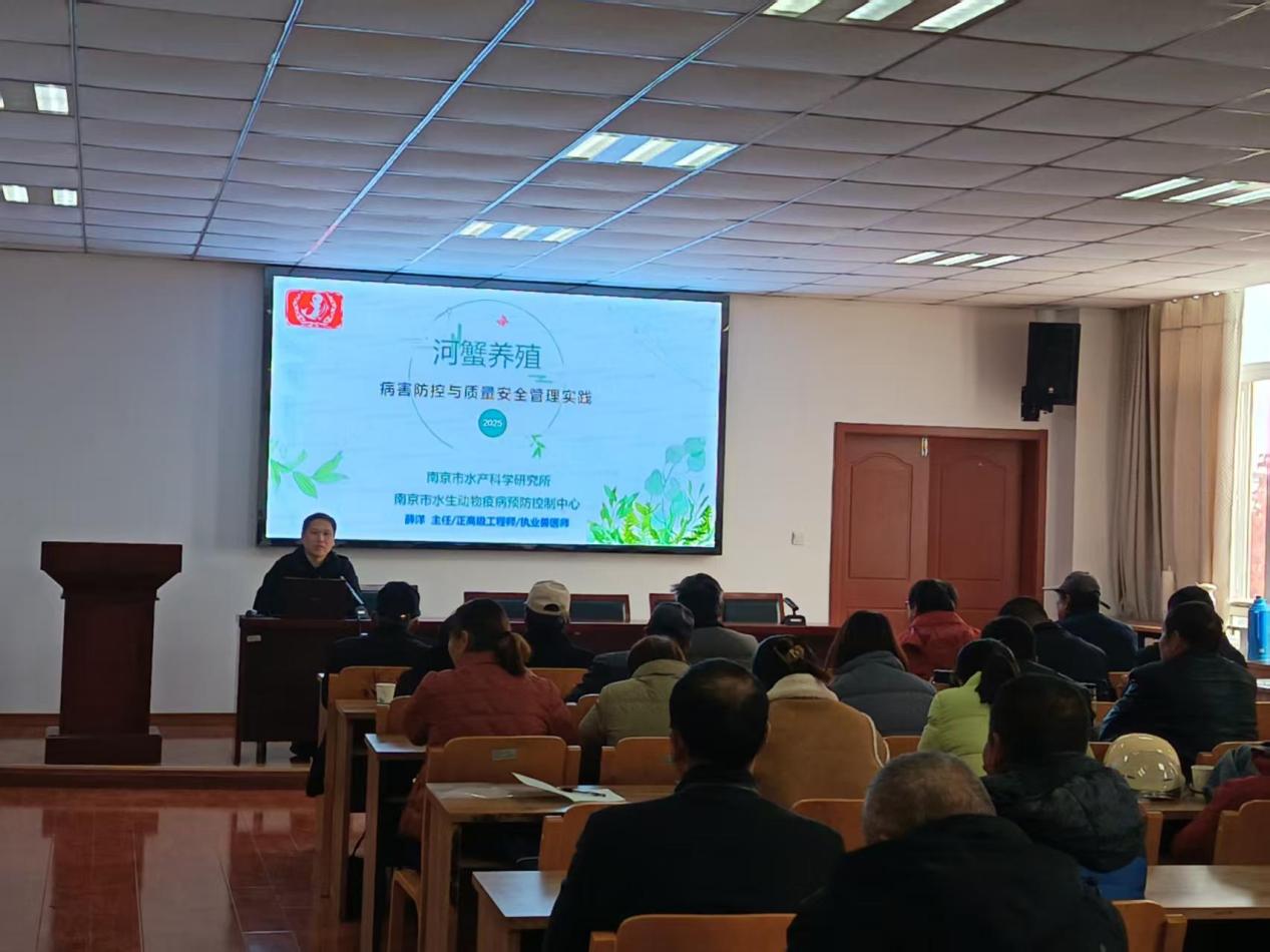 阳江镇作为固城湖螃蟹核心产区,养蟹是农民主要增收渠道。但苗种、水质、水草、病害等问题制约效益,此次培训紧扣“收官总结、开局谋划”需求,搭建“专家授课+经验分享+电商实操”平台,让农户在家门口学真本事。