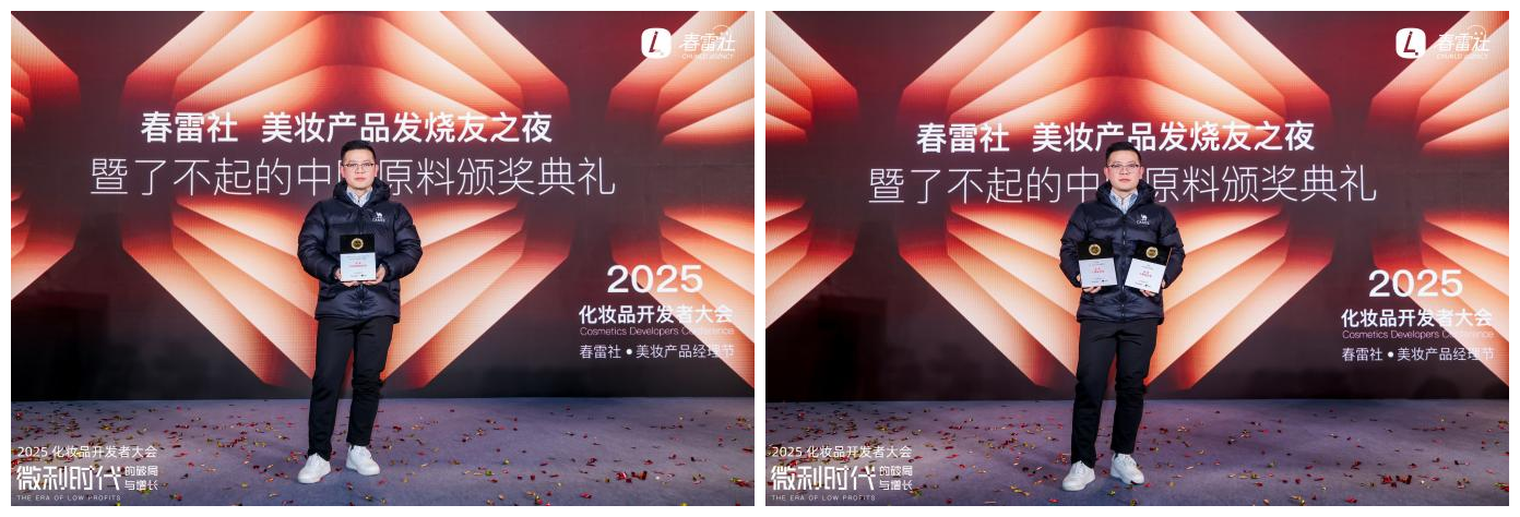 此次赛事历经层层筛选与专业评审:1月至4月启动原料大赛报名,5月至8月开展线上投票、原料功效评测、专家评审多轮专业筛选,8月29至30日在上海举办原料品鉴会,接受中头部品牌及工厂500+品鉴官的现场检阅,最终于12月26日的化妆品开发者大会颁奖典礼上正式揭晓结果。