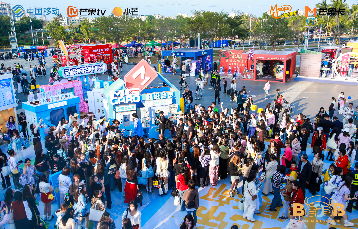 “BOB MALL”以巨型芒果崽造型亮相海口,一眼吸睛,让不少路人都忍不住驻足打卡。活动期间,抱抱屋凭借丰富的周边、实在的福利以及花样百出的玩法吸引了大量年轻观众和粉丝前来打卡体验,成为了当之无愧的“芒果跨年场外第二现场”。