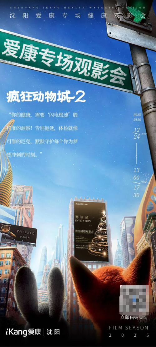 随着灯光暗下,现场瞬间化身为欢乐的“动物城”。客户们手捧爆米花与可乐,沉浸在朱迪与尼克的冒险故事中,影厅内充满了愉快的笑声。希望通过这场轻松愉快的电影,为客户带来欢乐的周末时光,更能传递出陪伴与关怀的心意,让每一位到场客户都能感受到爱康的真诚谢意。