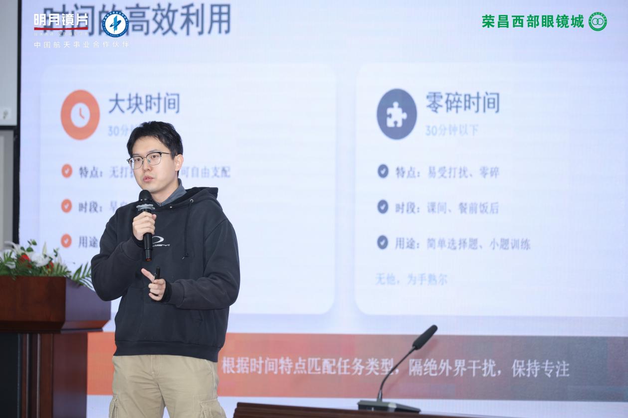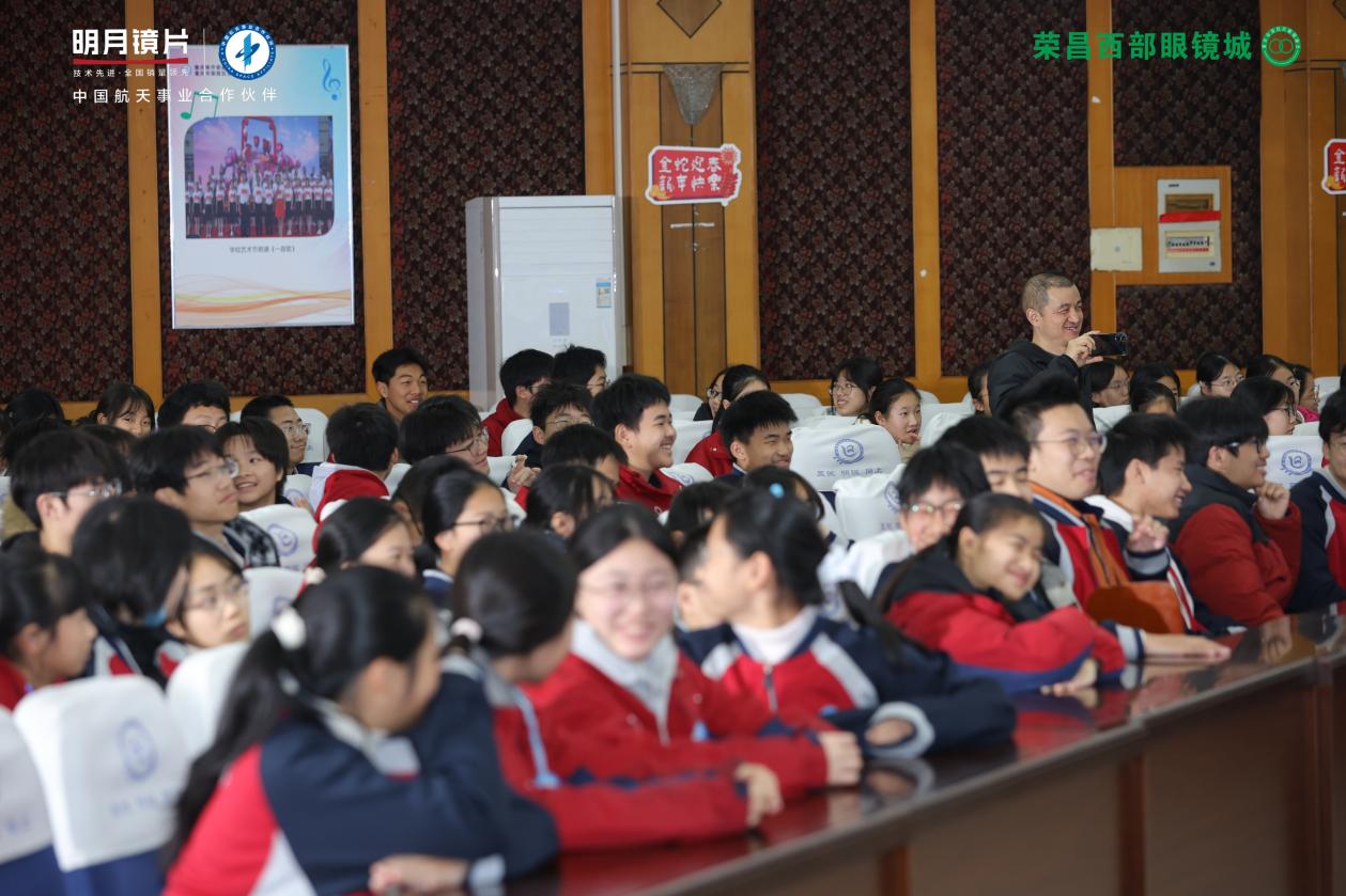近日,明月镜片携手荣昌西部眼镜城,发起“登顶巅峰 筑梦远航”近视防控宣讲活动,共同走进重庆市荣昌区宝城初级中学、西南大学附属中学荣昌实验学校。活动邀请清北优秀学子,分享学习经验,科普近视防控知识,用实际行动守护儿童青少年视力健康。