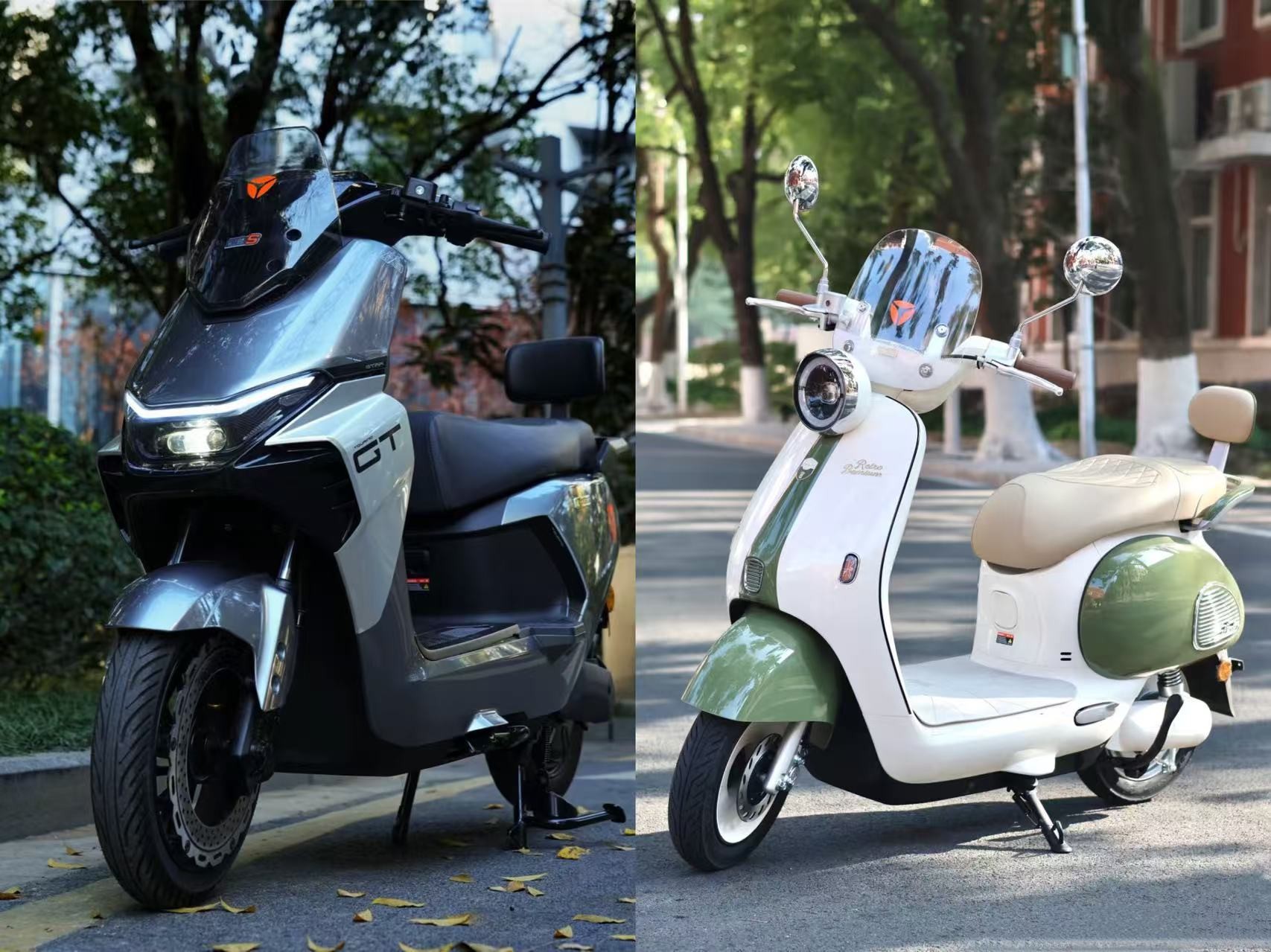 (上图为雅迪冠能S白鲨与雅迪摩登光芒)