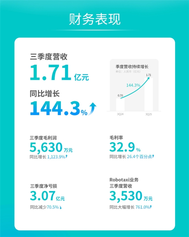 报告分析认为,随着文远知行跨国商业化部署的持续落地与深化,其长期盈利潜力将逐步释放并获得市场认可。值得注意的是,文远知行2025年第三季度已交出营收同比增长144%、Robotaxi收入同比激增761%的亮眼成绩单,为其长期盈利能力预测提供了坚实的业绩支撑。