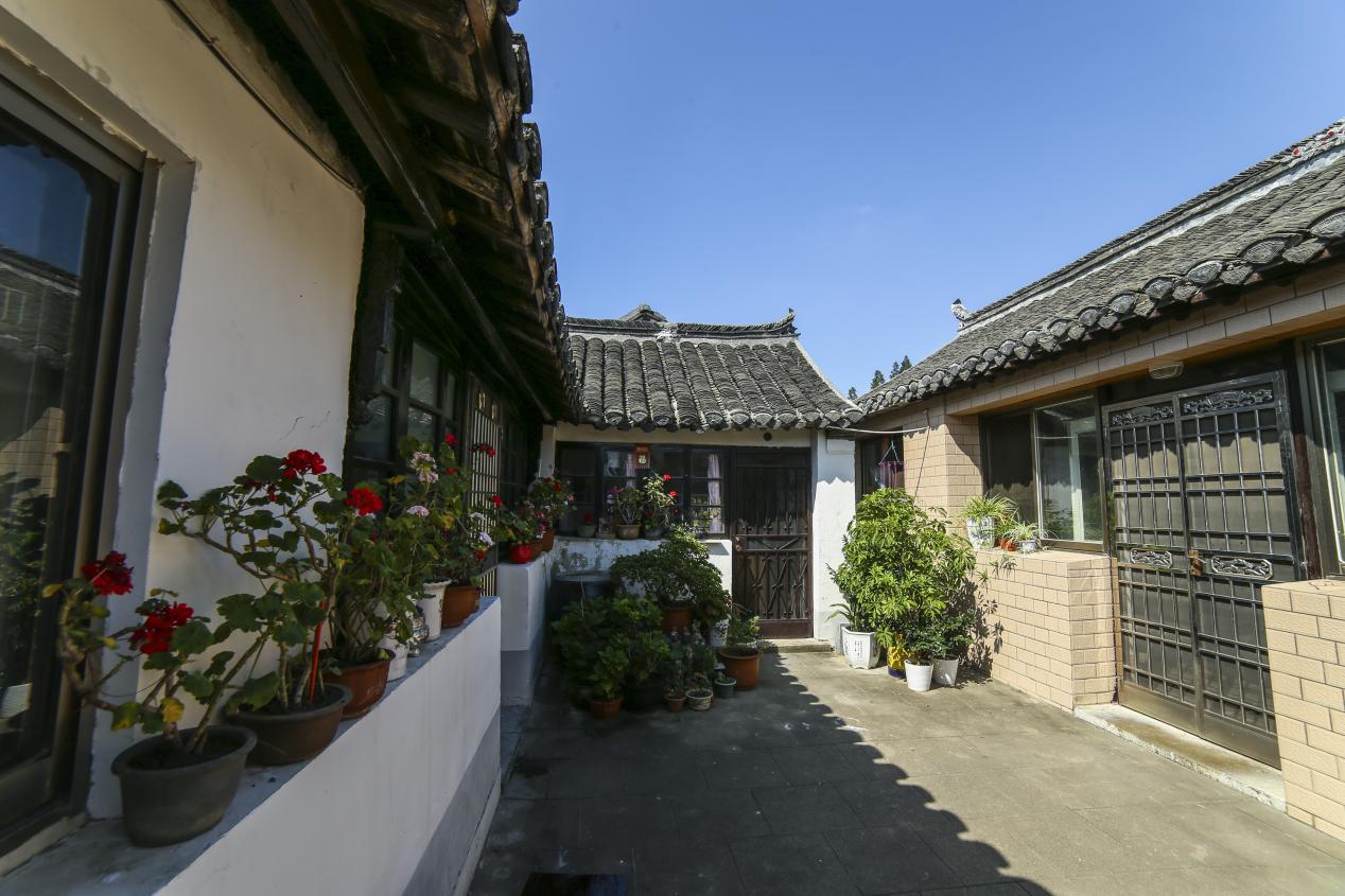 祁家小院,坐落于古镇堂子巷40号,始建于清代晚期,至今有200余年历史,房屋保存较好。现有堂屋、厢房等7间,建筑面积约120m2,堂屋顶为歇山顶,是“三合院”典范,2019年被列为盐城市首批历史建筑名录。“我们祁家在清朝年间属于大家族,曾有云:‘田多不过李同昌,钱多不过祁合顺’。伍佑祁氏奉润山公为祖,以‘合顺号’酱园起家,直到伍佑第二次解放后,除现有房屋外,祁家其余房产收为公有。”主人介绍道,家中主屋原有的八扇格栅门仍保存着,院内一盆杜鹃也是祖上传下来的,已有上百年历史了,每年如期开花,枝繁叶茂。古镇开街后,小院吸引了无数游客到此打卡。