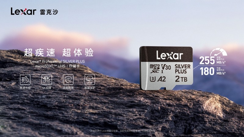 其中,雷克沙全球首款 2TB UHS-I microSD卡——Lexar Professional SILVER PLUS拥有255MB/s的高速读取速度与180MB/s的高速写入速度,可轻松驾驭4K 60帧高清视频录制,成为创作者的得力助手。