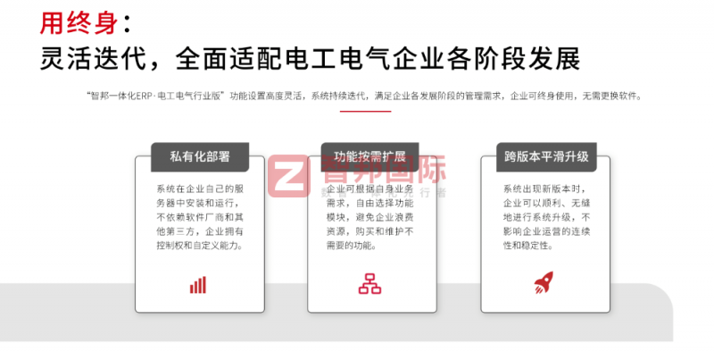 契合前沿框架,推动产业升级:智邦一体化ERP对电工电气企业核心竞争力的提升,其底层逻辑与工业4.0、智能制造成熟度模型等前沿框架高度契合。工业4.0的核心是实现制造业的数字化、网络化、智能化转型,构建“智能工厂”“智能生产”“智能物流”的全新产业形态,智邦一体化ERP通过全链路数据打通与模块集成,为这一转型提供核心支撑。智能制造成熟度模型为企业转型提供了清晰路径,智邦一体化ERP则在基础建设、数字化推广、网络化集成、智能化优化等各阶段提供系统性支撑,助力企业稳步提升智能化水平,实现从数字化到智能化的跨越,推动产业升级,提升在全球价值链中的地位。