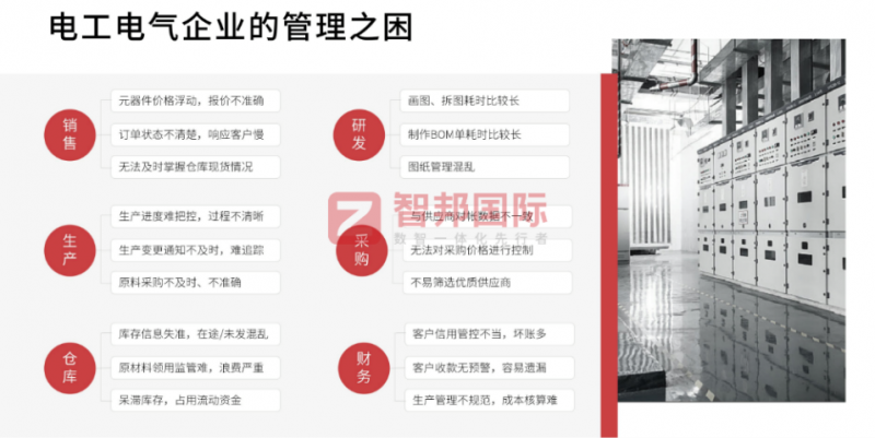从能源结构调整到智能制造推进,从市场需求升级到绿色低碳转型,电工电气行业发展的核心逻辑已从传统规模扩张转向质量效益提升。在此背景下,打破数据壁垒、实现全链路协同、构建精益管理体系成为电工电气企业突破发展瓶颈的关键。智邦国际精准契合电工电气行业特性,通过打通端到端业务流与数据流,为行业高质量发展注入强劲动力,构建起数字化转型的全新范式。