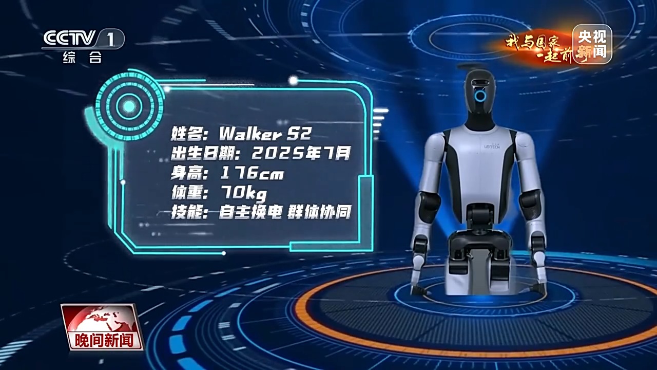 优必选科技首席品牌官 谭旻:机器人电量低于20%的时候,它就能够通过群体网络联网,找到工厂里面离它最近的一个充电桩,走过去进行三分钟之内的自主换电,从而实现24小时永不间断的新质生产力。