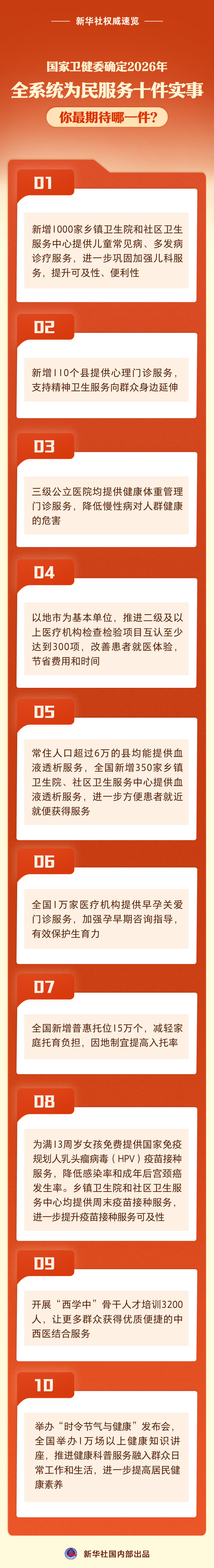 国家卫健委确定2026年全系统为民服务十件实事,你最期待哪一件?