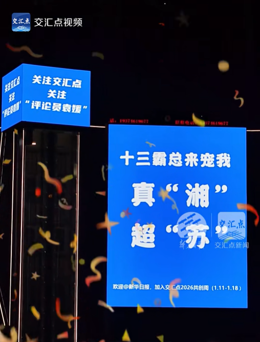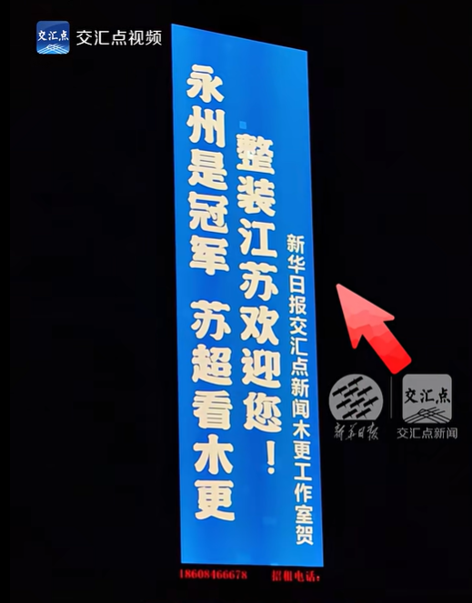 1月7日,新华日报·交汇点新闻火速接力这份跨省长情,上线系列庆祝广告, “十三霸总来宠我,真‘湘’超‘苏’”“永州是冠军,‘苏超’看木更,整装江苏欢迎您!”“关注交汇点,关注‘评论员袁媛’”等吸睛标语点亮永州街头。我们的记者马不停蹄,搭乘8小时高铁奔赴潇湘大地,只为亲眼见证苏湘两地的足球情谊在寒风中热烈绽放。