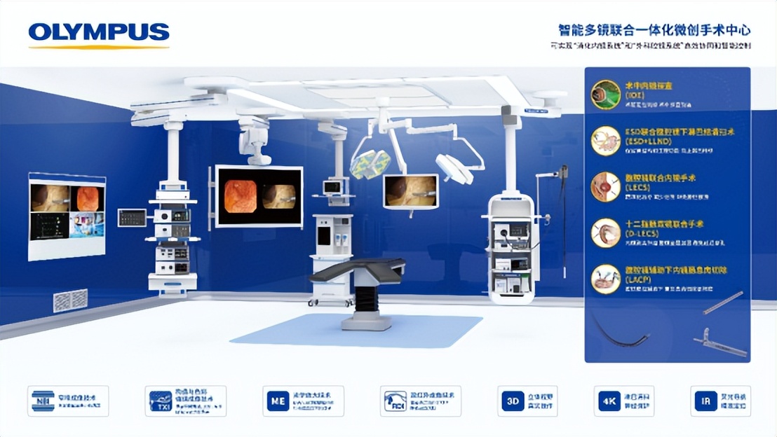 作为内窥镜领域的重要突破与创新,双镜联合技术逐渐普及。凭借着在内窥镜研发和制造方面的技术实力及丰富的产品线,奥林巴斯推出了智能多镜联合一体化微创手术中心解决方案。该方案成功实现了“内镜系统”与“腔镜系统”的高效协同和智能控制。医生借助内窥镜可以清晰观察管腔内部情况,在黏膜面或黏膜下层进行精细操作,同时依靠腹腔镜全面掌握管腔外状况,从而解决了传统单一方法难以应对的临床难题,并可减少患者手术创伤,缩短术后恢复时间。