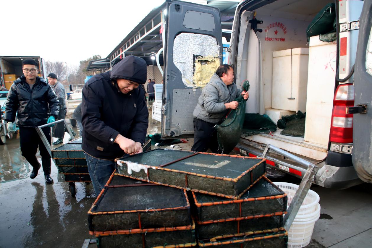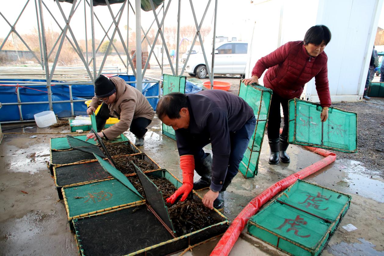 眼下正是冬季青虾上市时节,1月8日,记者在锡伟家庭农场青虾交易市场看到,前来交易青虾的车辆穿梭来往。虾农们有的在分拣,有的在交易,有的在装卸,现场呈现一派繁忙景象。