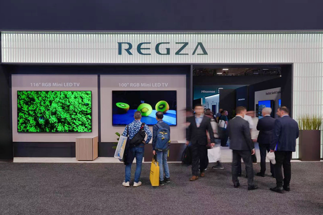 展台核心区域,116 吋、100吋两款超大屏RGB Mini LED电视如同牢牢吸引着所有人的目光。在展厅复杂的环境光线下,屏幕呈现的画面色彩鲜活通透,各类色彩都精准还原了真实质感,细节清晰可辨,即便是强光照射下,每一种色彩依然保持着浓郁本色,这恰是东芝重新定义高端电视色彩呈现标准的直观体现。