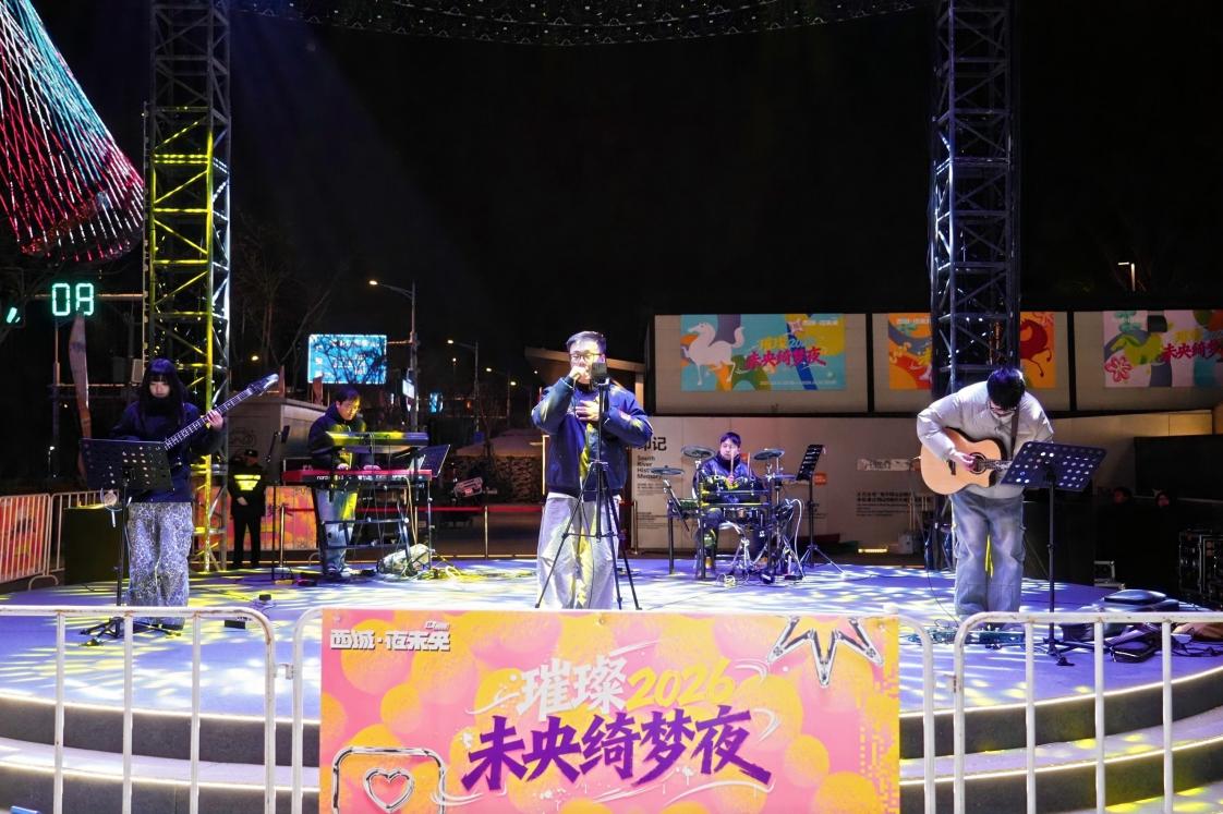 音乐歌舞,是年轻人的潮流符号之一,也是西城·夜未央“璀璨2026·未央绮梦夜”跨年活动的快乐主题。众多音乐人与乐队在这里以丰富的音乐风格、多样的音乐形式和精彩的舞台表演,呈现了一场融合音乐与舞蹈的年末视听盛宴。
