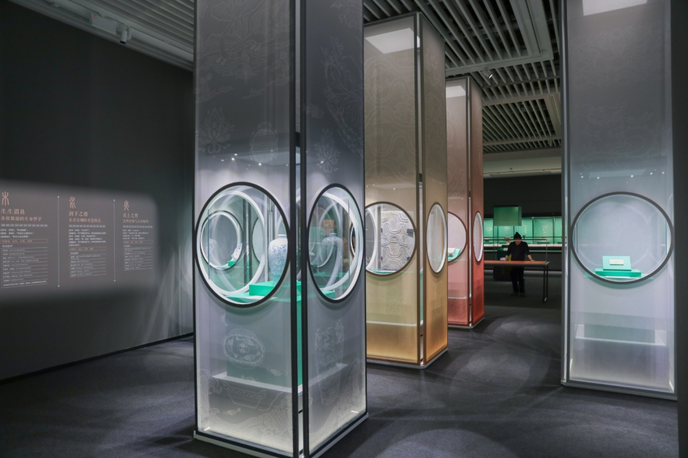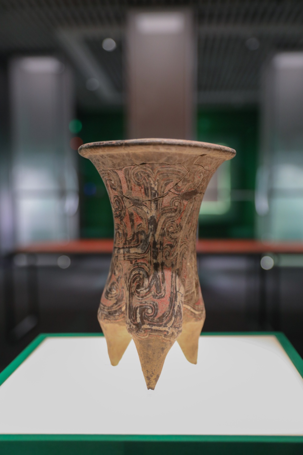 据介绍,本次展览以“五行始终”为纲,以时间为纬,以“启、丽、光、华”四大叙事单元,串起一部纹饰的“生命史”,从新石器时代陶器上稚拙的绳印纹,到青铜时代狞厉的兽面图腾;从汉唐织锦间奔涌的云气,到明清釉下盘绕的缠枝莲……通过器物之上纹样的演变,立体呈现中华民族审美风尚的变迁、文化心理的积淀与时代精神的跃动。