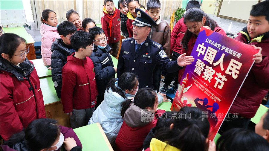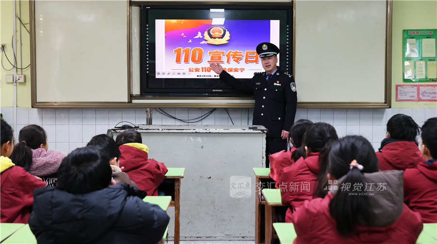 (特约摄影 耿玉和 08:57摄 10:38上线)1月9日,连云港市海州区幸福路小学,法治副校长、新海派出所民警丰庆华正在给小学生讲解警察节和“110”相关知识。2026年1月10日是第6个中国人民警察节,也是第40个“110宣传日”,连云港市海州区新海派出所组织辖区民警进校园,为中小学生讲解普及“110”相关知识,指导中小学生如何正确使用110公安报警电话,加深对警察工作的理解和支持。