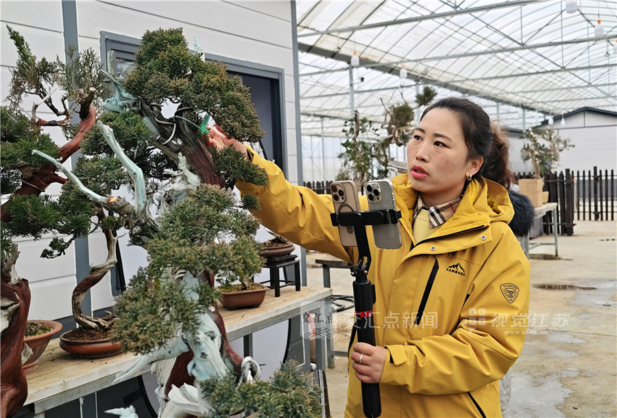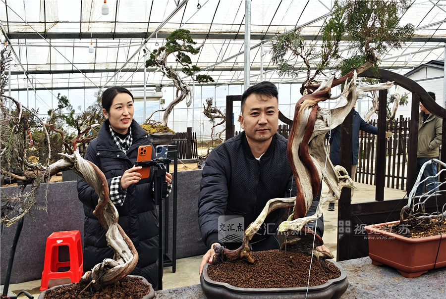 (特约摄影 丁华明 09:51摄 10:35上线)1月9日,沭阳县扎下镇的艺森园盆景造型基地热闹非凡,盆景电商主播正通过线上直播销售。据基地负责人介绍,元旦过后,这里的老桩盆景呈现热销态势,线上和线下购买者络绎不绝。