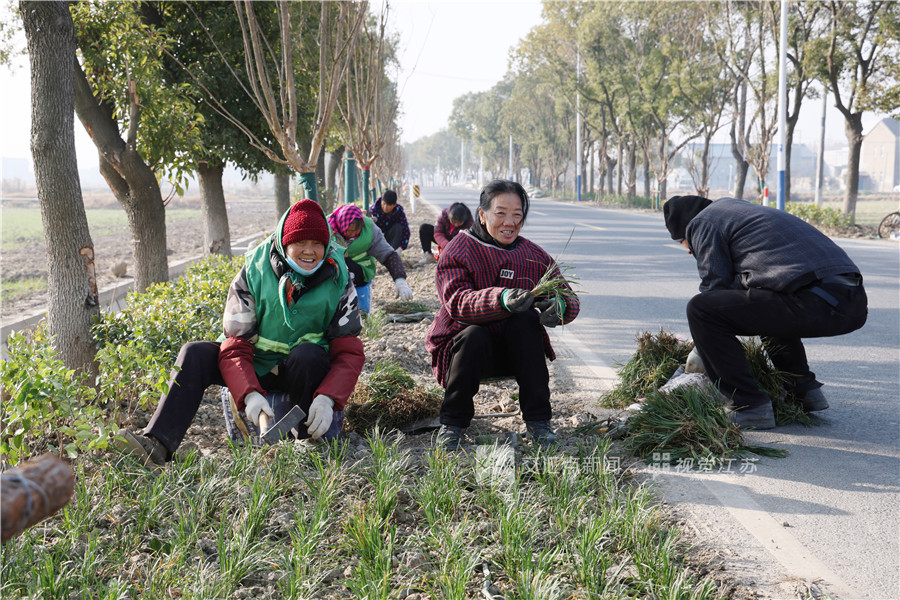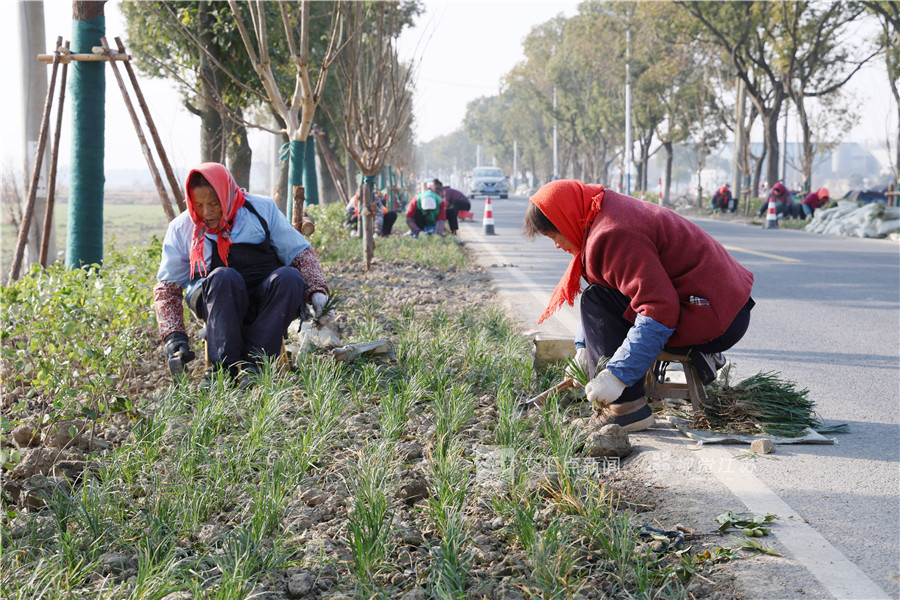 (特约摄影 邵金祥 09:41摄 11:02上线)1月9日,常熟市古里镇康博南路,绿化工人正在道路两侧栽植冬麦常绿植物,提升道路颜值,美化出行环境。