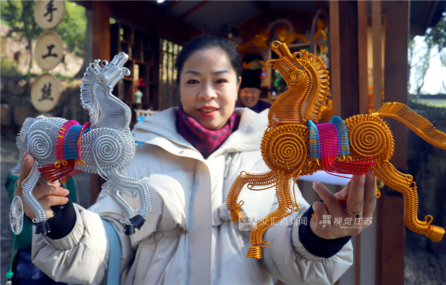 (特约摄影 王建康 12:29摄 15:49上线)1月9日,民间艺人蒋大江在苏州虎丘民间工艺亭内用金属丝等材料手工制作的生肖马栩栩如生,吸引了人们的目光。