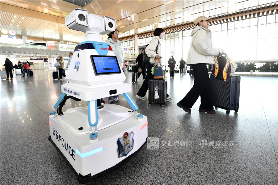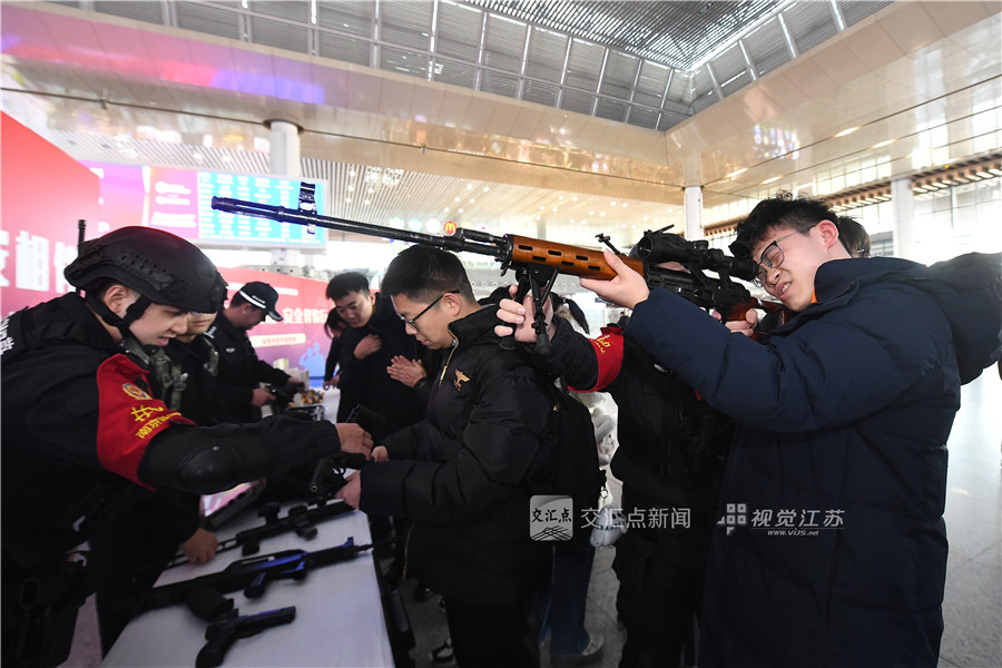 警务机器人灵活穿梭,特警防暴服、排爆设备、无人机反制系统等尖端装备整齐列阵,吸引众多旅客驻足围观。