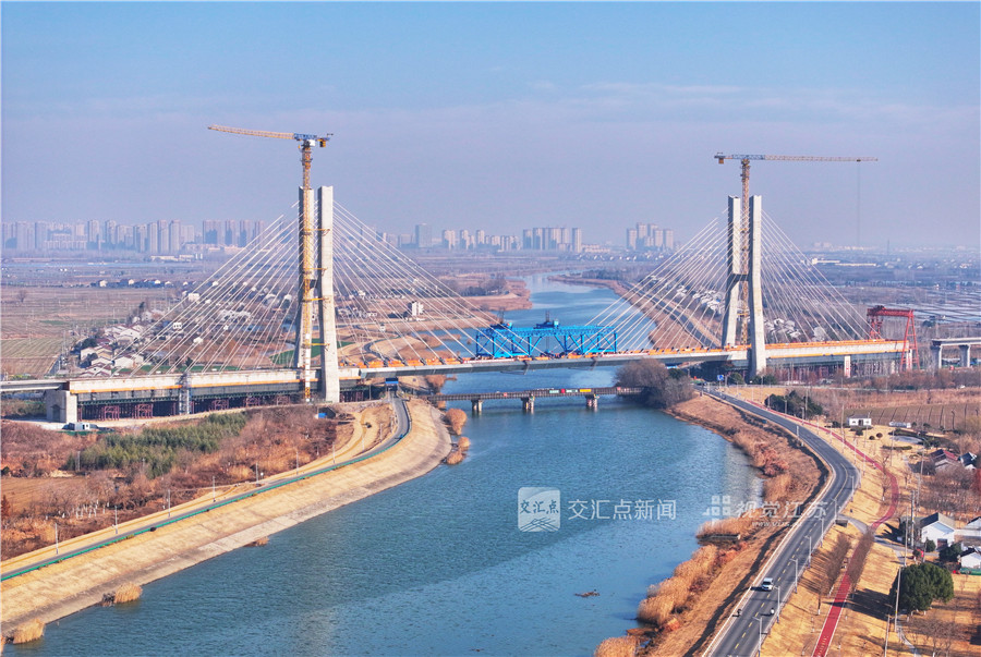 ||南京:沪宁合高铁南京特大桥跨滁河斜拉桥合龙
