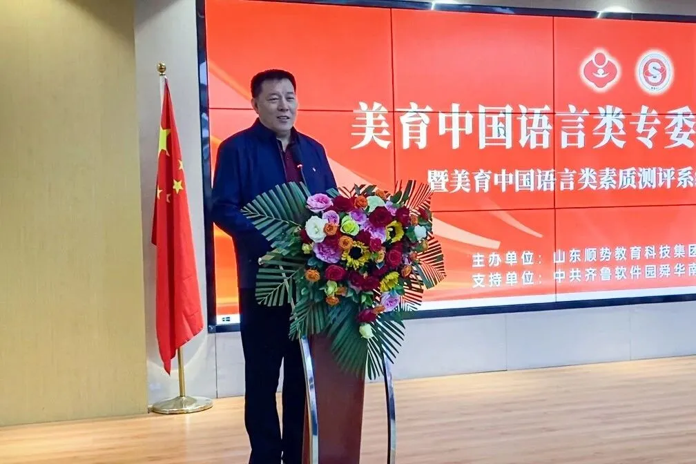 美育中国副主任王涛,齐鲁软件园舜华南片区党建指导员娄芹兰分别致辞,并对专委会的成立表示热烈祝贺。他们一致认为,在教育强国建设的大背景下,专委会的成立恰逢其时,当前,青少年跨文化交流需求日益增长,对外语教育的综合素质要求不断提高,专委会依托专业力量与官方指导,有望在推动外语素质教育革新、培育青少年跨文化审美感知力方面发挥关键引领作用。
