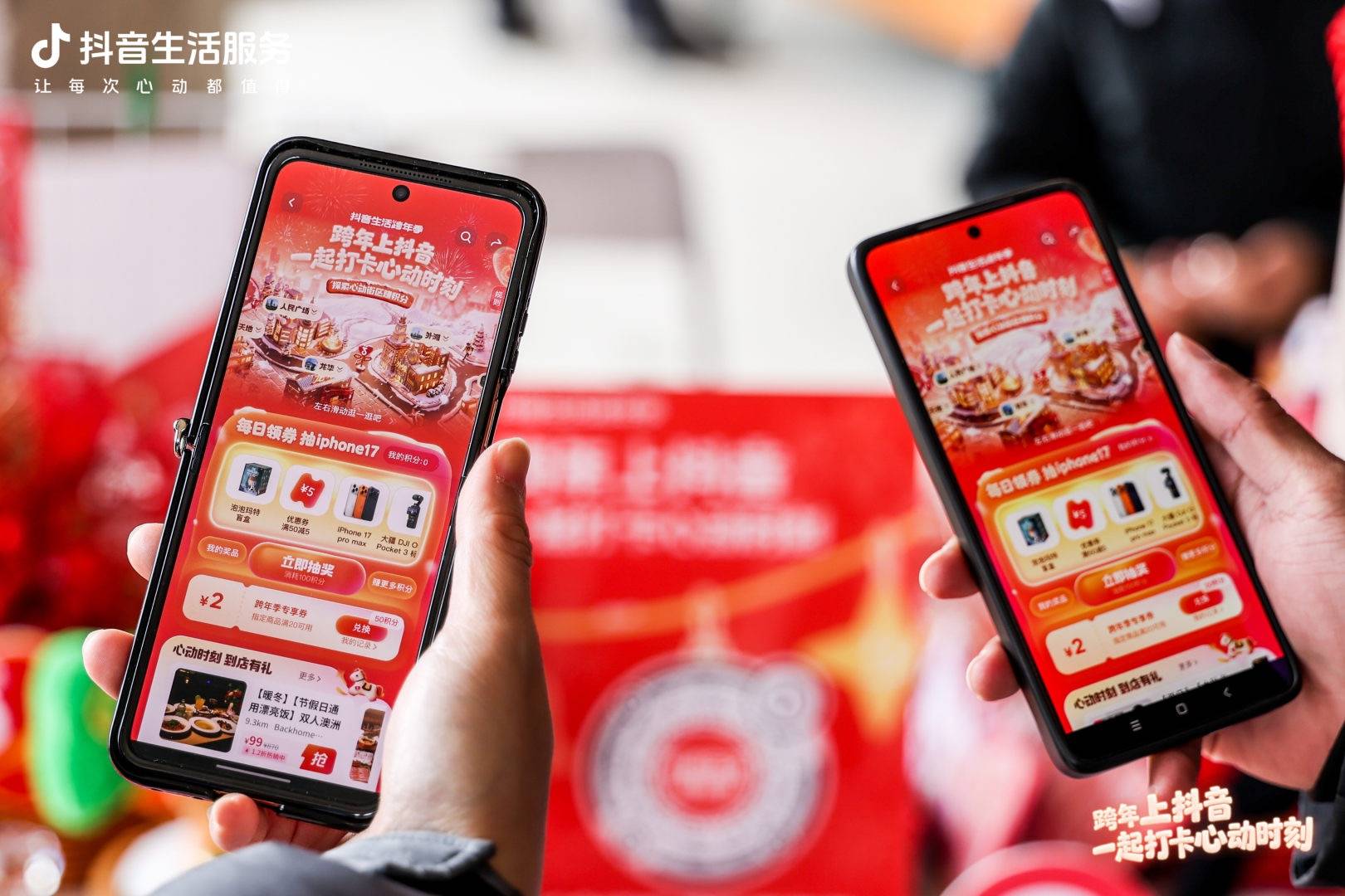 从抖音平台进入「抖音生活跨年季」主会场,完成任务解锁积分,跨年好礼天天抽不停!抖音搜索“新天地”、“外滩”、“徐家汇红包”、“龙华红包”等商圈相关信息,“5元立减券”即刻到手,直接叠加商家团购商品~“低至2折的圣诞烤鸡套餐”、“3折的宠物健康体检礼遇”、“亲友聚会松叶蟹”,还有“百元火锅代金券”等多款诚意跨年套餐现已上线,涵盖餐饮、逛街购物、亲子宠物等多元场景,一站式满足在上海跨年的消费需求。活动期间,「抖音生活跨年季」话题总播放量超过3.4亿,上海五大商圈交易总量同步提升30%,4个热点登上同城热榜总曝光超2000万。
