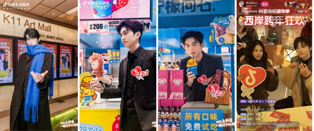 受到粉丝热情追随的一日店长唐思渝、river、徐志滨Soleil纷纷走进TX淮海、美罗城、大牛寿喜烧·和牛放题等平台合作商家,除和粉丝合影拍照外,店长们胸前佩戴装有特殊芯片的心动符号,打开手机NFC碰一碰就可在抖音平台上一键发出活动心动瞬间。还有靓丽直播达人李正经Burning全程直播一整天,陪伴线上和线下的粉丝们一起跨年!