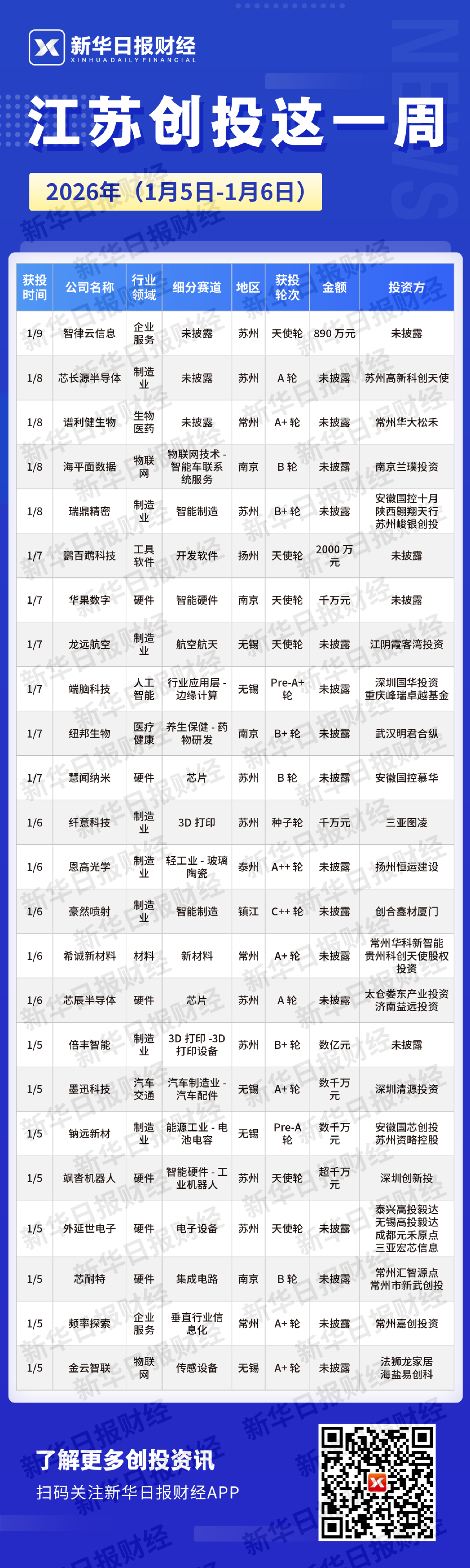 各设区市方面,南京“新年第一会”发布《南京市打造“6G之城”行动计划(2026—2027年)》和AI行动升级版方案,6G产业联盟同步启动;常州设立50亿元专项基金,与清华大学签订合作协议,建设西太湖人工智能国际社区;扬州出台《关于促进私募股权投资高质量发展的意见》,建立股权投资容错纠错机制,打造瘦西湖基金集聚区。