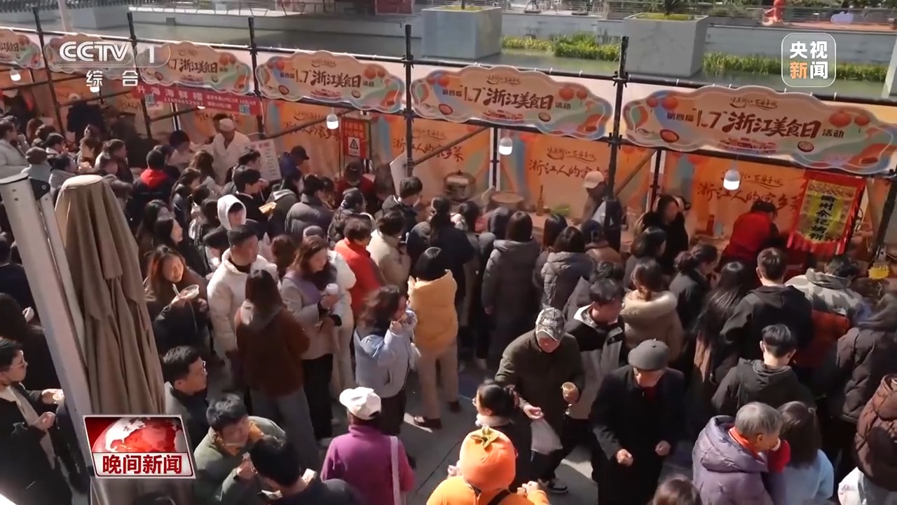 在浙江宁波,来自浙江十一地市及江苏、安徽近百个美食摊位,组成了一条“长三角风味长廊”。绍兴黄酒奶茶、台州板栗酥饼、嵊州小笼包等特色小吃琳琅满目。美食汇聚,打开了食客们的味蕾,也点燃了大家的消费热情。