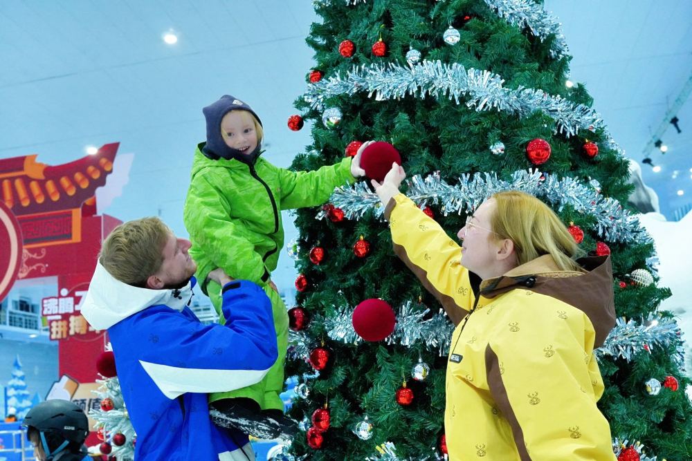 滑雪爱好者在深圳·前海冰雪世界参加迎新年活动↑