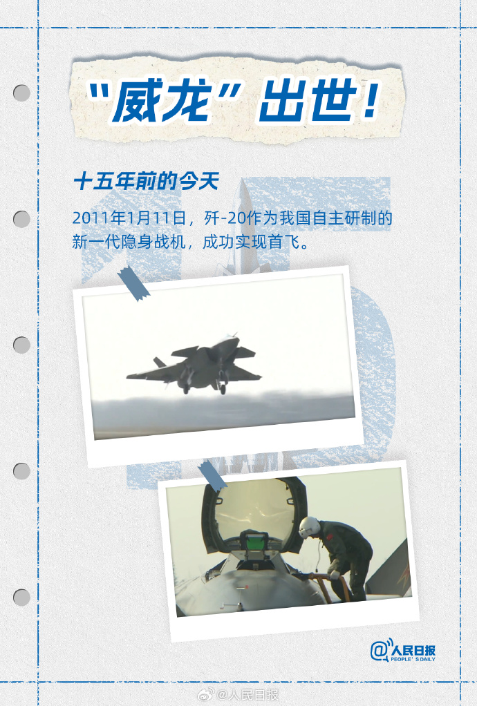 15年前的今天,歼-20首飞成功。战斗姿态首秀,换装“中国心”,遍布“东南西北中”,接英雄回家……15载长空砺剑,歼-20以蓝天为幕,见证空军腾飞,守护祖国山河。国之重器,更是国之底气!一组瞬间,带你感受#歼20带来的满满安全感#↓↓